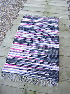 Anywho - I've finished up some rugs lately. Last minute for a craft fair last Sunday. To reinforce this last minute rush that I usually do, about 1/2 the rugs I sold were the new ones just finished that morning... sheesh.